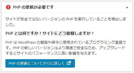 管理画面に表示されるphpのバージョンのアラート